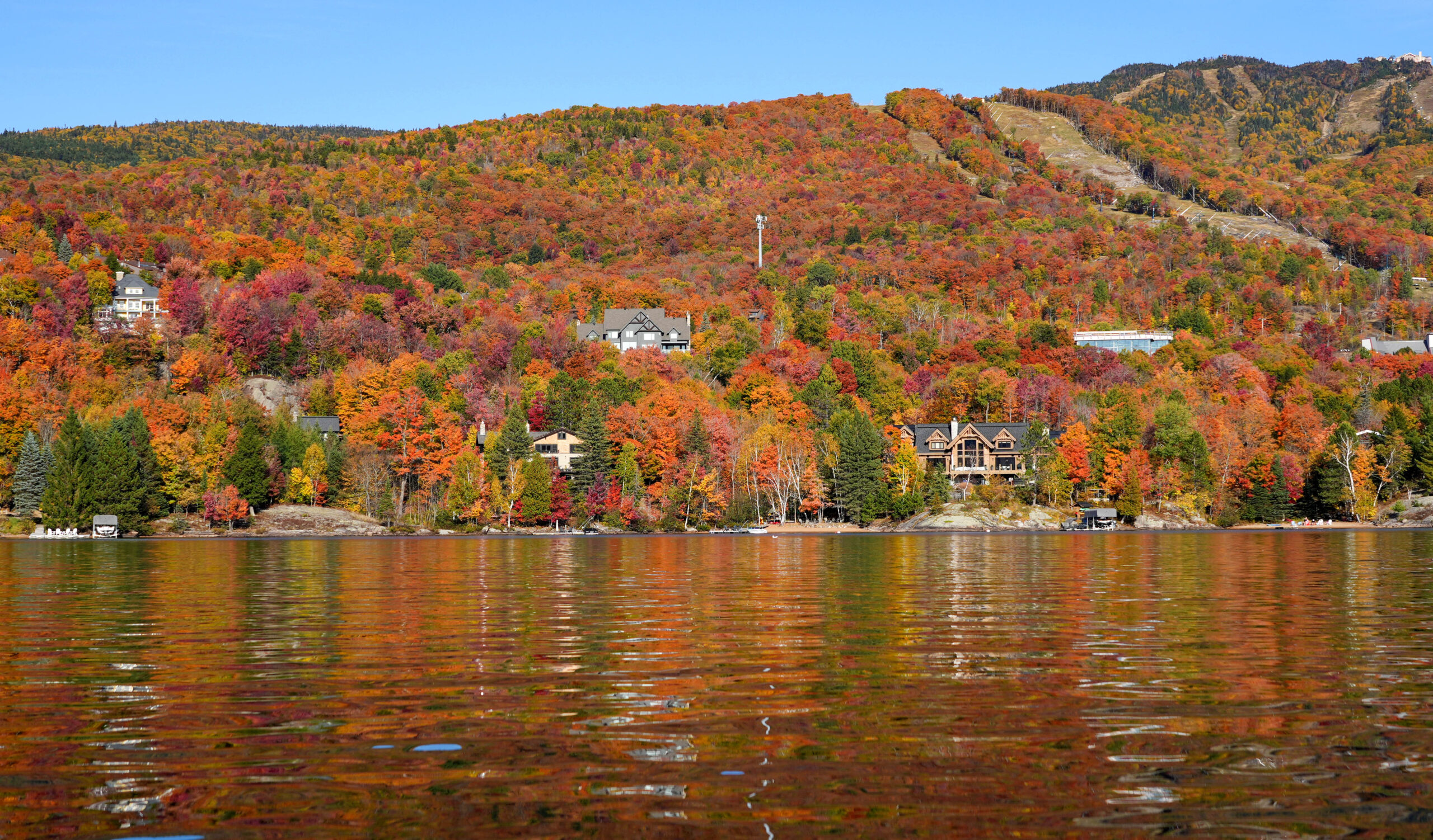 モン・トランブランはケベック州ローレンシャン高原にある人気のリゾート地で、山・湖・歴史あるビレッジが一体となった風光明媚な観光地です。年間を通じて自然を楽しめるリゾートで、夏はハイキング、冬はスキーなどのアクティビティが充実しています。